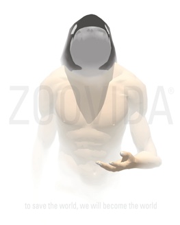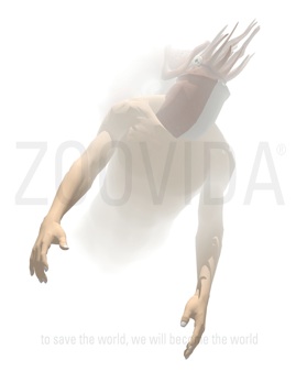 Le slogan (pour sauver le monde, nous deviendrons le monde) fait référence au lien qui existe entre l’élargissement du « cercle moral» aux autres règnes vivants et l’accroissement des possibilités transformatives de notre corps : en devenant l’Autre (l’autre culture, l’autre espèce) nous l’intégrons à notre moralité collective, lui octroyant ainsi les mêmes droits inaliénables dont bénéficient les autres membres de notre communauté. Si rien d’autre, les technologies géno-naniques ont accompli ce changement de paradigme moral qui a rendu possible l’assimilation dans la culture populaire de l’idée de «personne» et de celle du «vivant» .